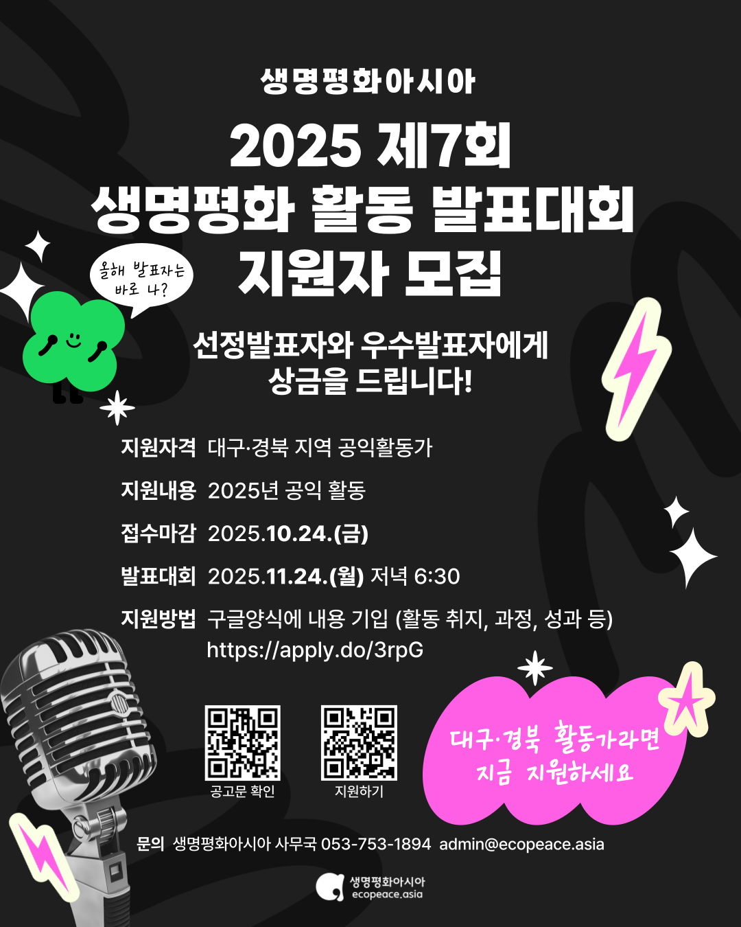 - 생명평화아시아 사무국 053-753-1894 / admin@ecopeace.asia